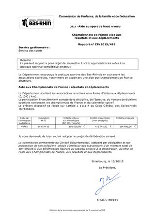 Le présent rapport a pour objet de soumettre à votre approbation les aides à la pratique sportive compétitive amateur.