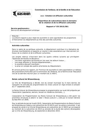 Le présent rapport a pour objet de soumettre à votre approbation les propositions d'intervention du Département au titre des activités culturelles.