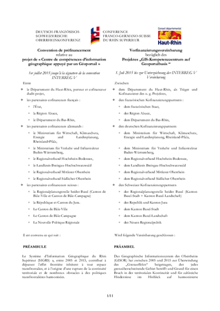 Convention de préfinancement relative au projet de « Centre de compétences d’information géographique appuyé par un Géoportail » couvrant la période allant du 1er juillet 2015 jusqu’à la signature de la convention INTERREG V.