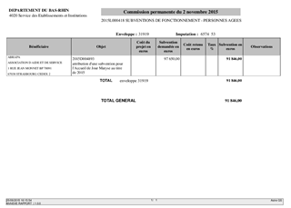 Répartition de l’enveloppe de fonctionnement en faveur d’actions dans le domaine des personnes âgées.