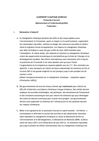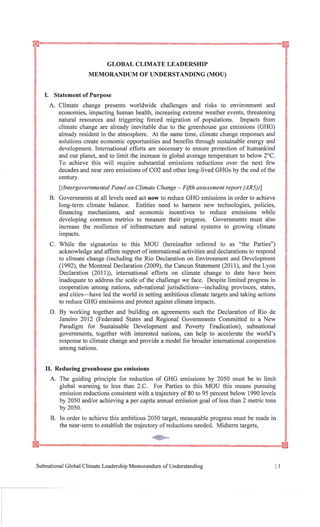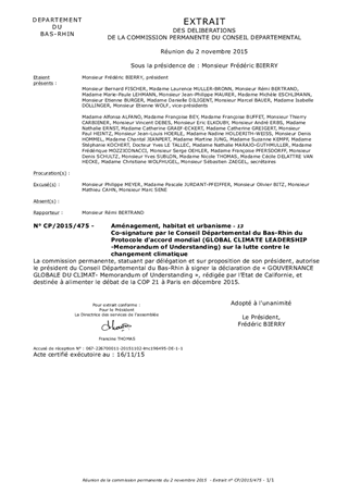 Co-signature par le Conseil Départemental du Bas-Rhin du Protocole d'accord mondial (GLOBAL CLIMATE LEADERSHIP -Memorandum of Understanding) sur la lutte contre le changement climatique