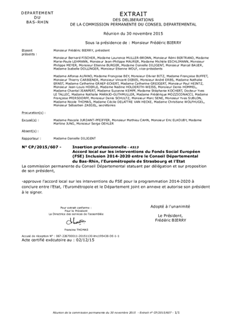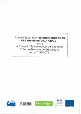 Accord local sur les interventions du Fonds Social Européen (FSE) Inclusion 2014-2020 entre le Conseil Départemental du Bas-Rhin, l’Eurométropole de Strasbourg et l’Etat