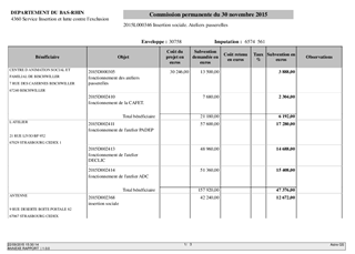 Subventions 2015 aux structures en charge de l’insertion sociale
