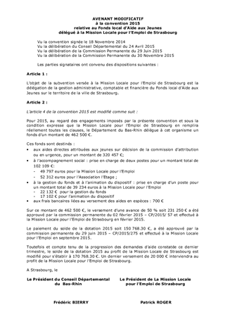 Financement 2015 à la Mission Locale pour l'Emploi de Strasbourg au titre du Fonds d'Aide aux Jeunes