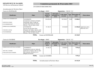 Répartition de subventions au titre de l'aide à la valorisation du patrimoine protégé.