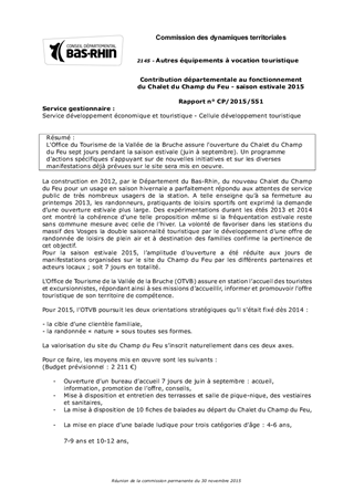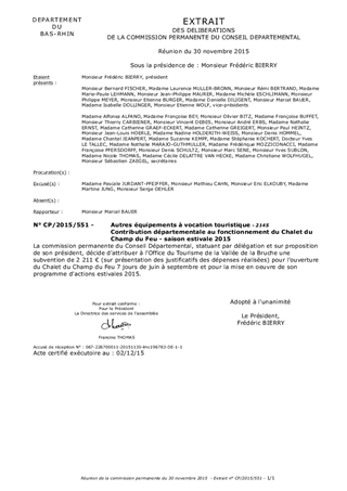 Contribution départementale au fonctionnement du Chalet du Champ du Feu - saison estivale 2015