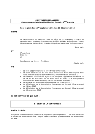 Dans le cadre de la mise en œuvre du Pacte de Réussite et afin de renforcer l’employabilité des bénéficiaires du RSA, le Conseil Départemental a décidé de mettre en place des « Ateliers de mobilisation vers l’emploi », axés sur l’image de soi, la préparation des entretiens de recrutement et l’utilisation du Web. Une 1ère tranche de 86 ateliers pour un montant de 98 605 € a été validée en commission permanente du 29 juin 2015. L’objet de ce rapport est de soumettre à la validation de la Commission Permanente la 2ème tranche permettant de planifier 65 ateliers pour un montant prévisionnel de 70 394 €.
