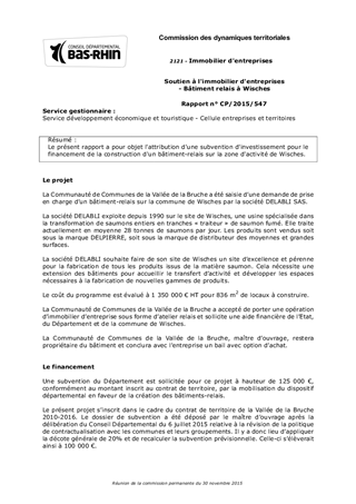 Le présent rapport a pour objet l'attribution d'une subvention d'investissement pour le financement de la construction d'un bâtiment-relais sur la zone d'activité de Wisches.
