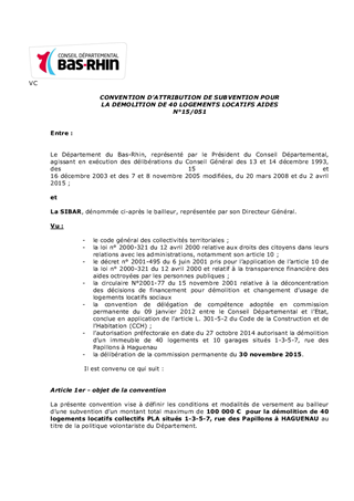 Le présent rapport concerne la demande d’aide financière de la SIBAR pour la démolition de 40 logements situés 1-3-5-7, rue des papillons à Haguenau dans le cadre du dispositif départemental d’aide à la démolition de logements locatifs sociaux.