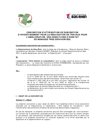 Le présent rapport concerne la demande de l'association AVA habitat et nomadisme pour l'amélioration des conditions d'habitat de ménages très défavorisés habitant sur un site d'habitat dégradé à Haguenau.