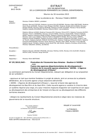 Fusion des agences départementales de développement - Création de la nouvelle agence alsacienne "ADIRA - L'Agence de développement d'Alsace"