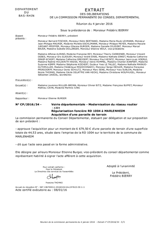 Régularisation foncière RD 1004 à MARLENHEIM Acquisition d'une parcelle de terrain