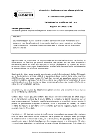 Le présent rapport a pour objet la validation par la Commission Permanente d’un document type dans le cadre de la conclusion des baux ruraux classiques ainsi que ceux intégrant des clauses environnementales pour la mise en œuvre de mesures compensatoires.