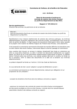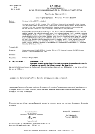 Dons de documents d'archives et contrats de cession des droits d'auteur au profit du Département du Bas-Rhin.