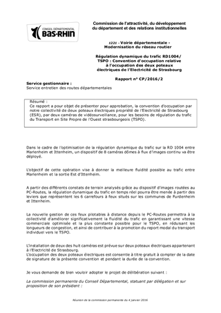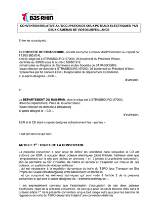 Ce rapport a pour objet de présenter pour approbation, la convention d'occupation par notre collectivité de deux poteaux électriques propriété de l’Electricité de Strasbourg (ESR), par deux caméras de vidéosurveillance, pour les besoins de régulation du trafic du Transport en Site Propre de l'Ouest strasbourgeois (TSPO).