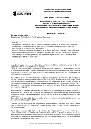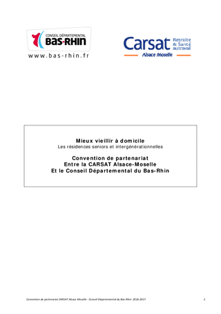 La présente convention s’inscrit dans l’objectif de construire et développer une offre nouvelle en logements adaptés pour des personnes vieillissantes autonomes qui contribuera au « bien vieillir » à domicile. Ainsi, la Caisse d’Assurance Retraite et de la Santé au Travail (CARSAT) Alsace-Moselle et le Conseil Départemental du Bas-Rhin, affirment leur volonté partagée de renforcer leur stratégie d’accompagnement des personnes âgées autour de la thématique de l’habitat collectif et du bien vieillir.