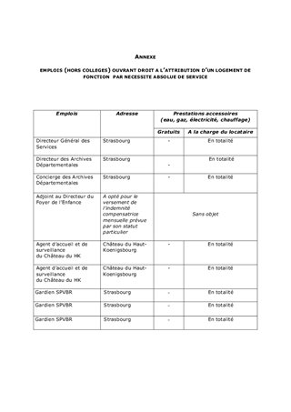 La réforme du régime des concessions de logement intervenue avec la parution du décret n° 2012-752 du 9 mai 2012 précise et encadre les conditions d'attribution des logements de fonction et fixe les nouvelles modalités financières relatives à leur occupation. Le décret supprime notamment la gratuité de la fourniture de l'eau, du gaz, de l'électricité et du chauffage ou de certains seulement de ces avantages pour les agents bénéficiant d'un logement pour nécessité absolue de service. Dans ce contexte, il est nécessaire de procéder à une mise à jour de la délibération du 29 mars 2010 fixant les conditions financières et la liste des emplois ouvrant droit à l'attibution de logement de fonction pour nécessité absolue de service. Cette mise à jour porte exclusivement sur les modalités financières et ne concerne pas la liste des emplois ouvrant droit à un logement de fonction pour les agents exerçant dans un établissement public d'enseignement local (collèges).