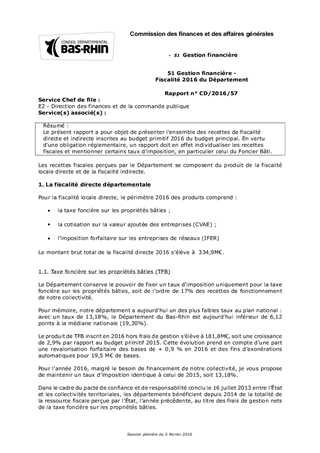 51 Gestion financière - Fiscalité 2016 du Département
