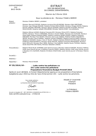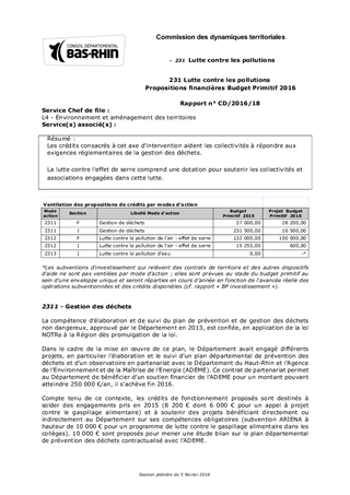 231 Lutte contre les pollutions Propositions financières Budget Primitif 2016
