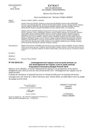 233 Aménagement de l'espace rural et santé animale Propositions financières Budget Primitif 2016