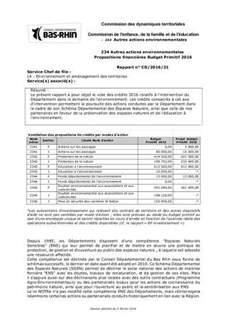 234 Autres actions environnementales Propositions financières Budget Primitif 2016