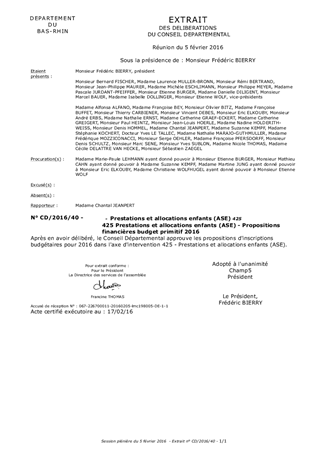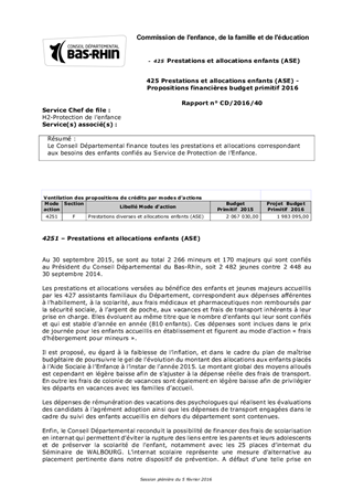 425 Prestations et allocations enfants (ASE) - Propositions financières budget primitif 2016