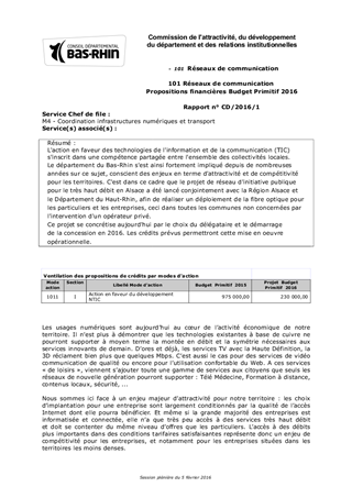 101 Réseaux de communication Propositions financières Budget Primitif 2016