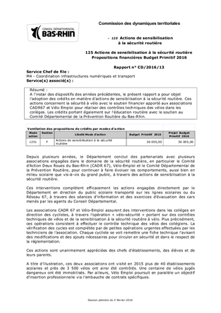 125 Actions de sensibilisation à la sécurité routière Propositions financières Budget Primitif 2016