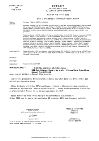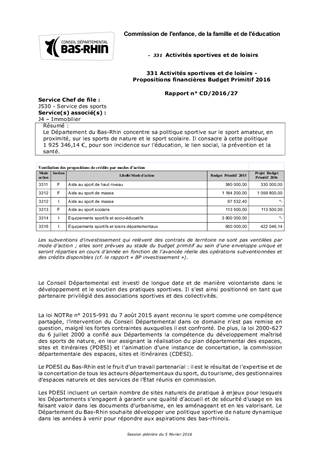 331 Activités sportives et de loisirs - Propositions financières Budget Primitif 2016