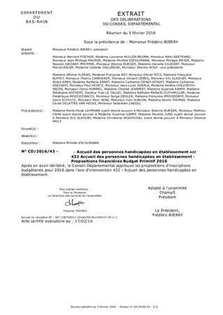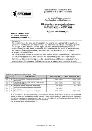 432 Accueil des personnes handicapées en établissement - Propositions financières Budget Primitif 2016