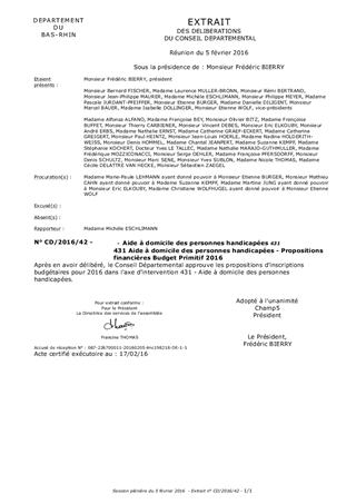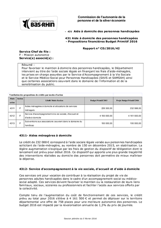431 Aide à domicile des personnes handicapées - Propositions financières Budget Primitif 2016