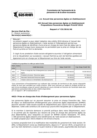 442 Accueil des personnes âgées en établissement - Propositions financières Budget Primitif 2016