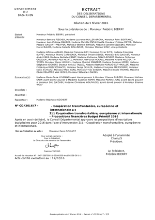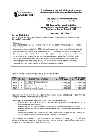 211 Coopération transfrontalière, européenne et internationale - Propositions financières Budget Primitif 2016