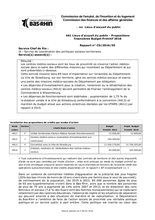 461 Lieux d'accueil du public - Propositions financières Budget Primitif 2016