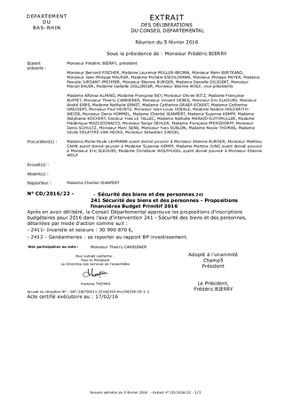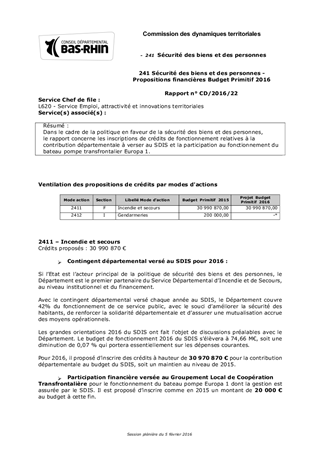 241 Sécurité des biens et des personnes - Propositions financières Budget Primitif 2016