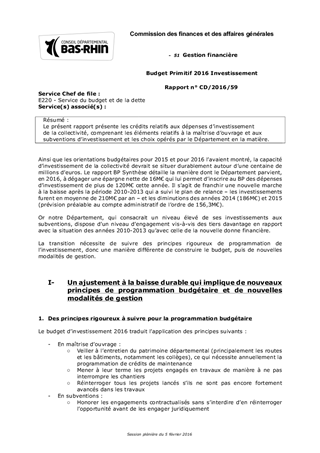 Le présent rapport présente les crédits relatifs aux dépenses d’investissement de la collectivité, comprenant les éléments relatifs à la maîtrise d’ouvrage et aux subventions d’investissement et les choix opérés par le Département en la matière.