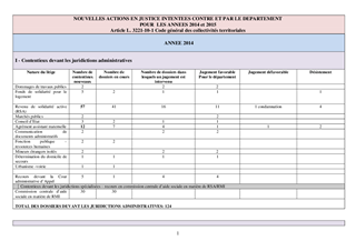 5- Administration générale - Le présent rapport a pour objet d'informer le Conseil départemental des contentieux intéressant le département pour les années 2014 et 2015