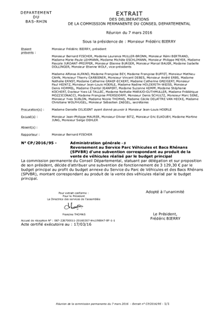 Ce rapport vise à rendre au budget annexe du Service du Parc de Véhicules et des Bacs Rhénans (SPVBR) le produit de la vente des véhicules réalisé par le budget principal.