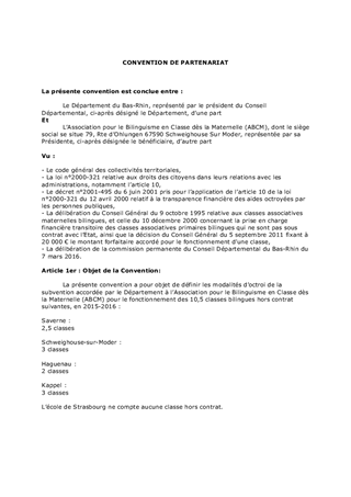 Le Conseil Départemental subventionne depuis 1995 les classes associatives bilingues dont les enseignants ne sont pas sous contrat avec l'Education nationale. Pour en permettre le fonctionnement, il attribue une subvention à l'Association pour le Bilinguisme dès la Classe de Maternelle (ABCM-Zweisprachigkeit), qui gère l'ensemble des associations locales chargées de mettre en œuvre l'enseignement bilingue.