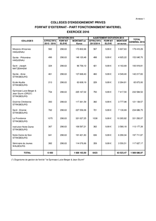 Dotations de fonctionnement 2016 des collèges privés sous contrat d'association