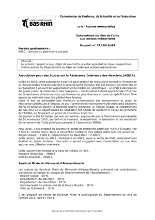 Le présent rapport a pour objet de soumettre à votre approbation deux propositions d'intervention du Département au titre de l'aide aux actions mémorielles.
