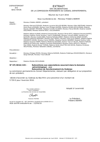 En application de la loi du 13 août 2004, relative aux libertés et responsabilités locales, le Comité départemental des retraités et des personnes âgées (CODERPA) est placé depuis le 1er janvier 2005 sous la responsabilité du président du Conseil Départemental. Le Conseil Départemental est appelé à se prononcer sur la subvention de fonctionnement annuelle accordée au Coderpa.