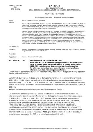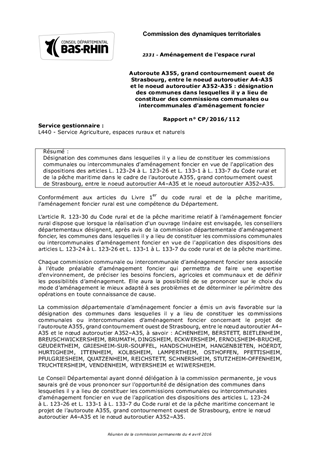 Désignation des communes dans lesquelles il y a lieu de constituer les commissions communales ou intercommunales d'aménagement foncier en vue de l'application des dispositions des articles L. 123-24 à L. 123-26 et L. 133-1 à L. 133-7 du Code rural et de la pêche maritime dans le cadre de l'autoroute A355, grand contournement ouest de Strasbourg, entre le noeud autoroutier A4–A35 et le noeud autoroutier A352–A35.