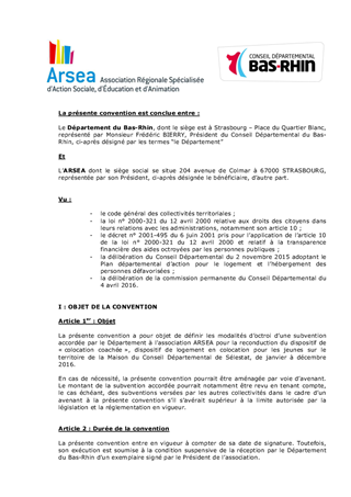 Ce rapport porte sur la demande de l'association ARSEA concernant la reconduction du dispositif de 'colocation coachée' relatif à l'accompagnement de jeunes dans le cadre d'une colocation, sur la base de l'accueil de 15 à 20 jeunes pendant l’année 2016. Cette action s'inscrit, d'une part, dans le cadre de la politique jeunesse initiée par le Conseil Départemental et, d'autre part, dans le cadre de la mise en oeuvre du plan départemental d'action pour le logement et l’hébergement des personnes défavorisées 2015-2020, adopté le 2 novembre 2015 par le Conseil départemental.