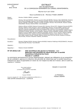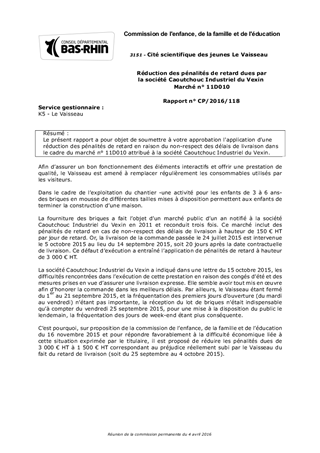 Le présent rapport a pour objet de soumettre à votre approbation l'application d'une réduction des pénalités de retard en raison du non-respect des délais de livraison dans le cadre du marché n° 11D010 attribué à la société Caoutchouc Industriel du Vexin.