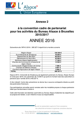 Bureau Alsace à Bruxelles - Avenant financier et contribution 2016