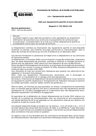 Le présent rapport a pour objet de soumettre à votre approbation les propositions d'attribution de subventions aux communes et groupements de communes pour la construction, la transformation et la mise aux normes d’équipements sportifs et socioéducatifs inscrits dans les contrats de territoire.