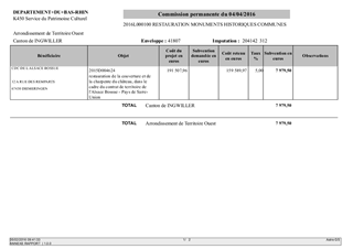 Le présent rapport a pour objet l'attribution d'une subvention pour les travaux inscrits dans les contrats de territoire, en faveur du patrimoine protégé.