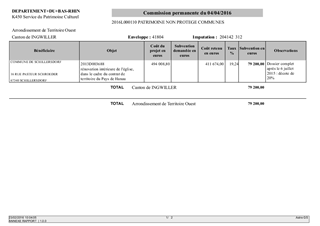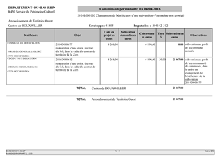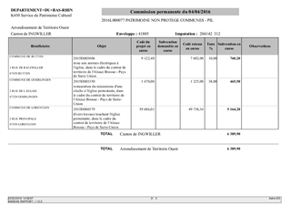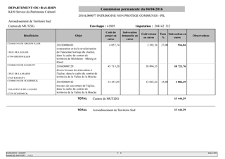 Patrimoine non protégé : subventions aux communes et cotisations à divers organismes