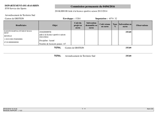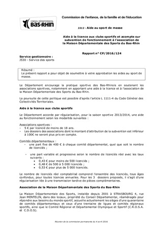 Le présent rapport a pour objet de soumettre à votre approbation les aides au sport de masse.